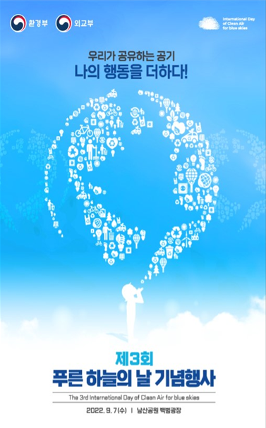 '푸른 하늘의 날'은 대기환경 개선을 위한 전세계인의 참여와 행동을 촉구하기 위해 우리나라가 최초로 제안해 유엔총회가 지난 2019년 12월 결의안을 채택했다. 이에 우리나라는 2020년 8월 이날을 국가기념일로 지정해 올해로 3회째를 맞는다.
