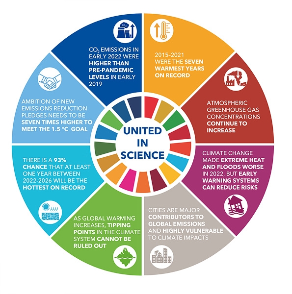 '유엔기후과학협동보고서'(United in Science 2022)는 세계기상기구(WMO)를 중심으로 유엔 환경 프로그램(UNEP), 유엔 재난 위험 경감 사무국(UNISDR), 세계 기후연구 프로그램(WCRP), 글로벌 탄소 프로젝트(GCP), 영국 기상청 및 도시 기후 변화 연구 네트워크 등의 연구결과를 종합한 것이다.