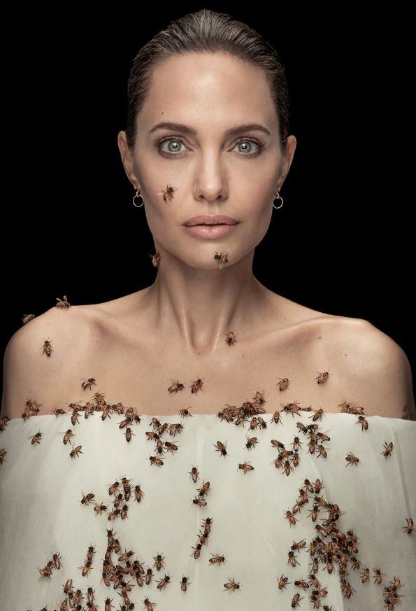 온몸에 꿀벌이 뒤덮인 안젤리나 졸리의 사진이 화제다.