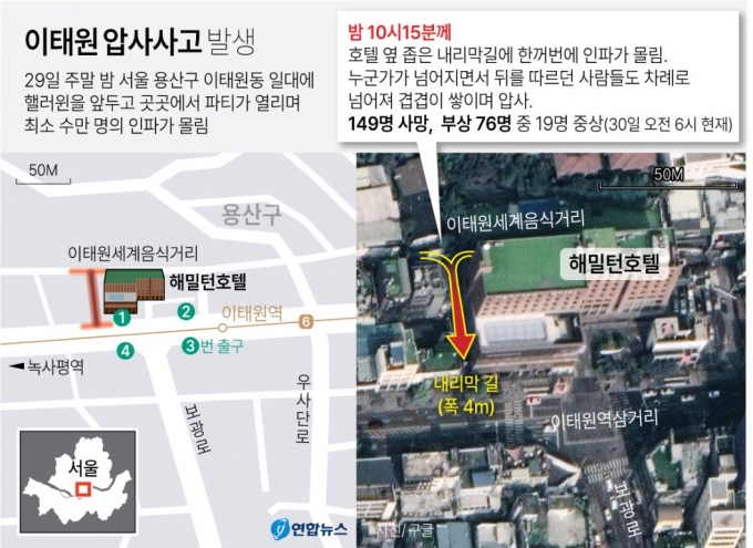 서울 한복판에서 151명이 깔려죽는 참사가 벌어졌다. 233명의 사상자가 발생한 것은 세월호 참사 이후 8년만이다.