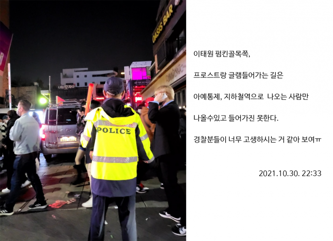 하지만 당국의 주장과 달리 지난해 핼러윈 때 이태원에서 촬영된 각종 영상과 사진에서 야광봉을 든 경찰들의 보행통제 및 일방통행 유도 모습이 보여 누리꾼들 사이에서 화제가 됐다.
