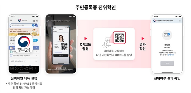 또한 통신3사는 신분도용 등 부정사용 방지를 위해 '주민등록증 모바일 확인서비스'를 본인 명의로 개통된 스마트폰 1대에서만 이용가능하도록 제한하고, 화면 캡처 차단 및 QR무늬 초기화 등으로 보안을 강화했다.
