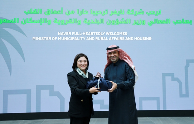 네이버는 29일 마제드 알 호가일(Majed Al-Hogail) 사우디아라비아 자치행정주택부 장관 일행이 네이버의 제2사옥인 '네이버 1784'에 방문했다고 밝혔다.
