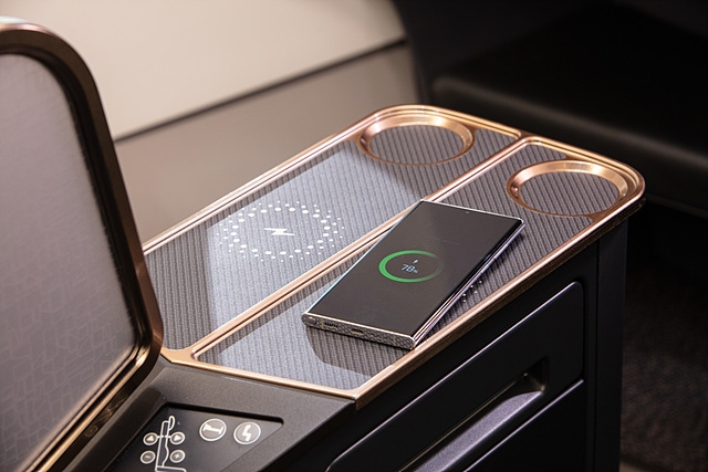 이 좌석은 44cm 크기의 주문형오디오비디오(AVOD)모니터가 장착되며, 전기 아이콘이 표시된 좌석의 팔걸이 부분에 휴대폰을 올려놓기만 하면 무선충전이 가능한 장치를 추가해 편안함을 극대화 했다.