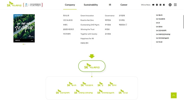 SK이노베이션의 홈페이지가 ESG(환경·지속가능성·지배구조)를 상징하는 초록색으로 바뀌었다.