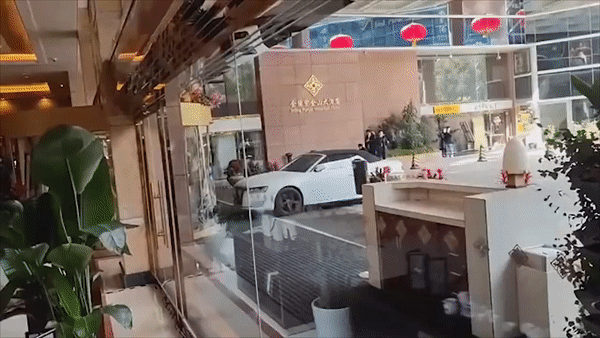 중국 상하이의 5성급 호텔에서 한 남성이 차량으로 호텔 로비로 돌진하는 등 난동을 부렸다.