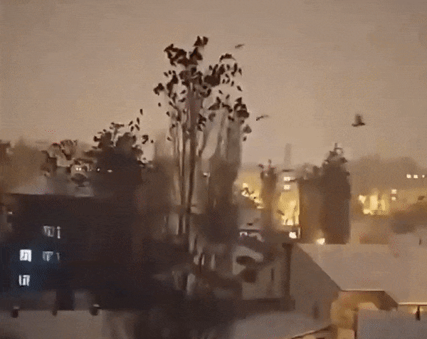 영상에는 건물 사이로 높게 솟은 나무에 수백마리의 새 떼가 모여앉아 있었다. 사진으로 보면 나뭇잎으로 착각할 만큼 많은 수의 새가 몰려 울부짖었다.