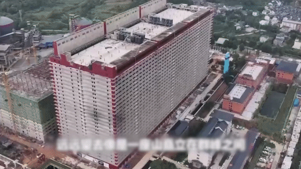 지난해 8월 중국 민간기업 종신카이웨이가 완공한 이 건축물은 전체 면적은 40만평방미터(㎡)에 이르고 두 개 동으로 나눠진 건물엔 자동 급식기·소독 시스템에다 오물을 청정 에너지로 전환하는 폐기물 처리 시스템 등이 갖춰져 있다.