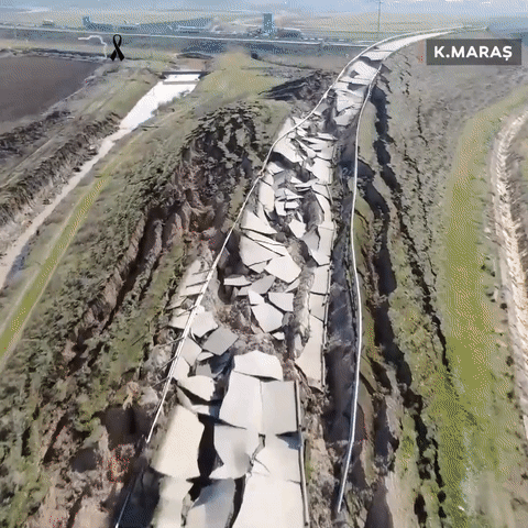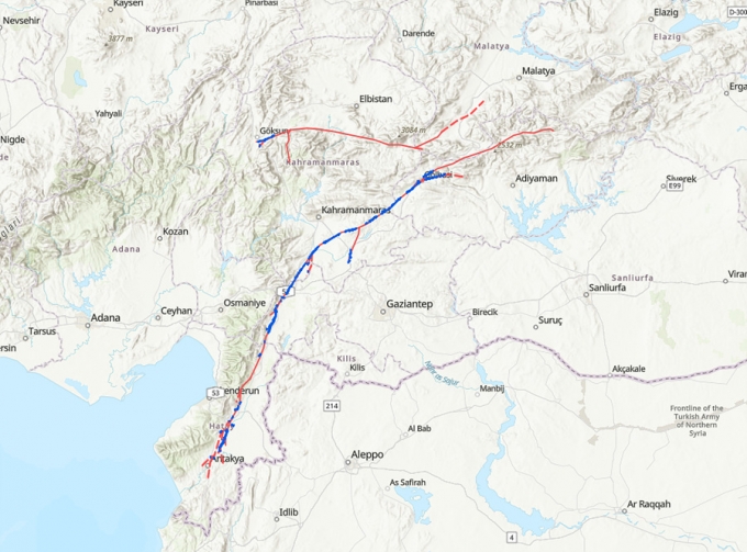 USGS가 분석한 지도에 따르면 튀르키예 서부 안타키야 중심부부터 아드야만 북부까지 현지 산맥 지대를 따라 약 320㎞ 길이의 파열이 발생했다. 또 카흐라만마라슈 북부에도 약 150㎞에 걸친 것으로 추정되는 파열이 발생했다.