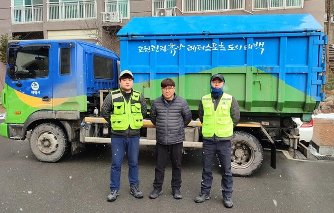 강원 태백시 안정호 주무관과 김해수·양훈규 환경미화원은 지난 1일 오후 3시10분께 장성동의 모 아파트에서 대형폐기물을 수거하다 현금 515만원이 든 봉투를 발견했다. 헌 가구와 쌀통을 수거해 현장에서 파쇄작업을 하던 중 쌀통에서 돈을 발견한 것이다.