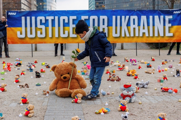 한 시민단체는 벨기에 EU 본부 앞마당에 전쟁에 희생된 민간인과 장병을 추모하는 인형과 촛불을 놓기도 했다.