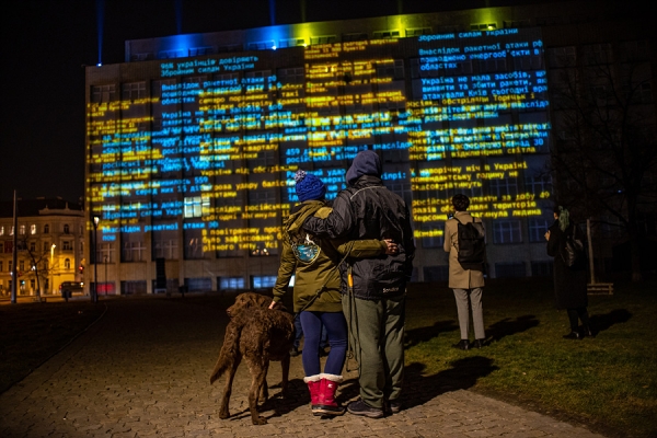 이밖에도 포르투갈 의회, 벨기에 브뤼셀에 위치한 유럽연합(EU) 이사회 건물, 체코 내무부 건물 등에도 우크라이나 국기를 상징하는 노란색과 파란색 조명이 비춰졌다. 우크라이나 수도 키이우 우체국 본관에는 스위스 예술가 게리 호프스테터가 만든 '평화의 비둘기' 조명이 투영되기도 했다.