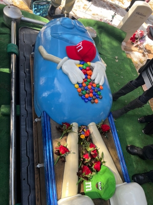 ▲초콜릿 엠앤엠즈(m&m's) 캐릭터 모양 관으로 치러진 장례식(사진=라운드트리 스콧 틱톡 캡처)