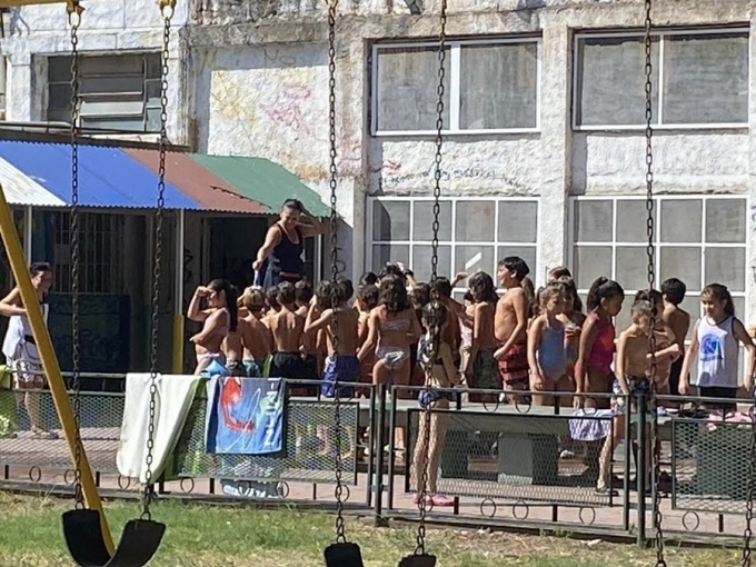 14일(현지시간) 부에노스아이레스 타임즈 등 현지매체에 따르면 축구스타 메시의 고향으로 유명한 아르헨티나 로사리오시의 프란시스코 구루차가 초등학교는 계속되는 폭염과 그로 인한 전력공급 불안정으로 교내 냉방 기구 사용에 제한이 따르자 이같은 대안을 마련했다.