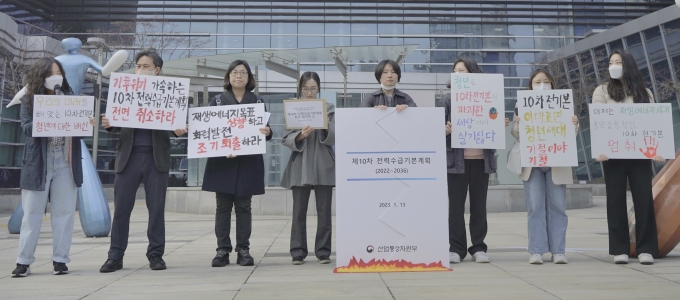 이날 9인의 공동 원고인단은 소장을 내기 전 서울행정법원 앞에서 기자회견을 열어 "제10차 전기본의 재생에너지 목표 비중으로는 국가 전체 수요는 물론 현재 RE100(재생에너지 100%) 참여 28개 기업의 필요 전력을 공급하는 데에도 턱없이 부족한 수준"이라며 "탄소중립과 기후위기 대응이라는 세계적 흐름에 역행하는 제10차 전기본을 전면 취소하라"고 촉구했다.