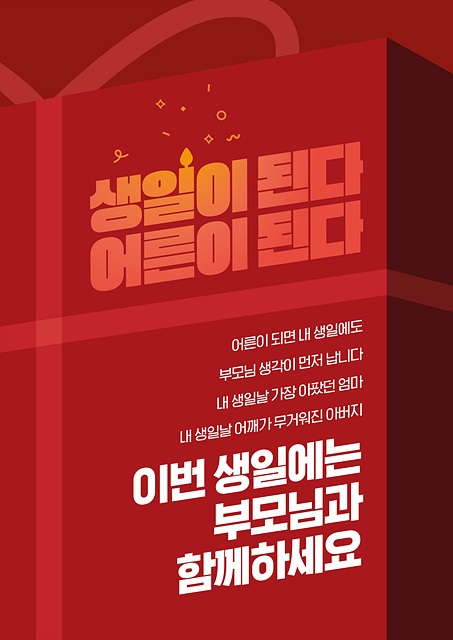 이번 프로모션은 자신의 생일날이 축하와 선물을 받는 날이었다면 이제는 부모님께도 감사의 뜻을 전하는 날로 바꾸자는 뜻을 담고 있다. 정관장은 내 생일에 가장 아팠던 어머니, 어깨가 무거워졌을 아버지를 위한 감사의 선물에 다양한 혜택을 제공한다.
