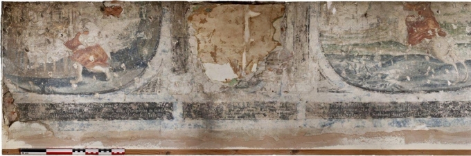 벽화는 17세기 전반기 시인 프란시스 퀄스(Francis Quarles)가 1635년에 쓴 '엠블럼스(Emblems)' 속 장면을 담고 있는 것으로 파악됐다. 벽화 속에서 천사가 새장 속에 갇힌 남자의 손을 잡아끄는 장면은 성경의 한 구절을 묘사한 것으로 보인다.