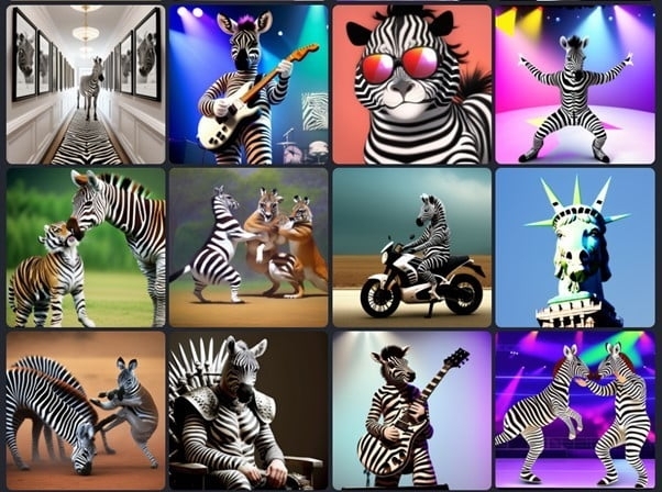 이미지는 UN컨퍼런스에서 발언하는 세로의 모습, 왕좌의게임 의자에 앉아있는 외로운 세로의 모습, 얼룩말과 K-POP스타, 두발로 우뚝 선 세로가 서리를 활보하는 모습, 무대 위에서 춤을 추는 모습 등 다양하다.