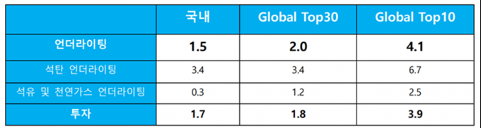 알리안츠(Allianz), 악사(AXA), 스위스 리(Swiss Re) 등 글로벌 10대 손해보험사의 점수(언더라이팅 4.1점/투자 3.9점)에 미뤄볼 때 국제적인 기준에 한참 미치지 못하는 점수다. KoSIF는 "글로벌 10대 손해보험사 및 재보험사가 보험산업을 선도하고 있는 것을 고려한다면, 국내 손해보험사는 글로벌 손해보험사와의 차이를 줄이기 위한 노력이 필요해 보인다"고 밝혔다.