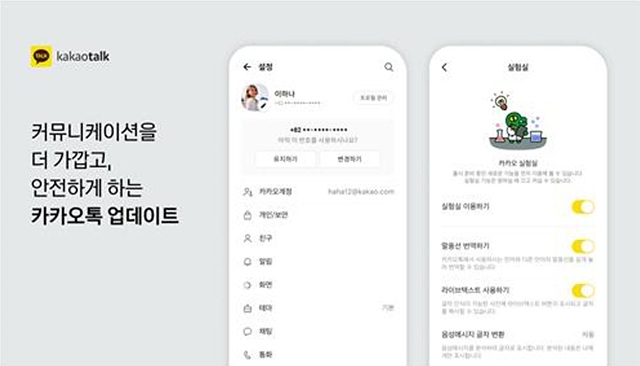 카카오톡 계정보안도 강화됐다. 이용자 카카오톡 계정과 실제 사용중인 전화번호가 맞게 연동돼 있는지 확인하는 안내메시지가 설정탭에 주기적으로 노출된다. 현재 사용중인 번호가 아니라면 안내창을 통해 쉽게 전화번호를 변경할 수 있다.