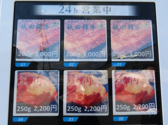 3일(현지시간) 영국 가디언에 따르면 일본 북부 아키타현 센보쿠역 근처에 야생 곰고기 자판기가 지난해 12월 설치됐다. 보도에 따르면 250g당 2200엔(약 2만1700원)에 판매되는 자판기 곰고기는 역 주변의 거주민과 기차 승객들이 애용하고 있으며 이용객이 꾸준히 늘고 있다.