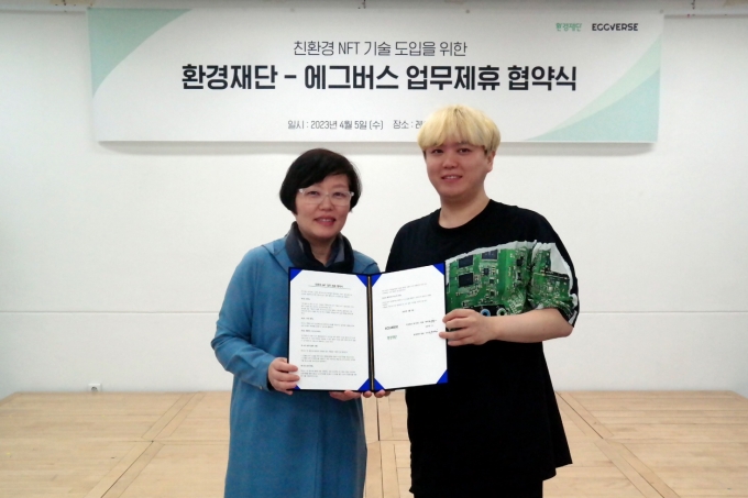 웹3.0 대체불가토큰(NFT) 마켓플레이스 에그버스가 국내 최초 환경전문 공익단체 '환경재단'과 식목일을 기념해 업무협약을 체결했다고 5일 밝혔다.