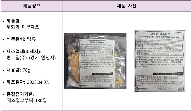 이에 식약처는 해당 제품에 대해 즉각 판매중지 및 회수를 조치했다. 회수 대상은 제조일자가 2023년 4월 7일로 표시된 제품이고 6.5㎏이 생산됐다.