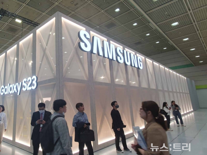 삼성전자는 재활용 나무합판을 활용해 전시부스를 꾸몄다. 또 폐플라스틱을 활용한 이니셜 열쇠고리를 관람객들이 기념품으로 만들어서 가져갈 수 있도록 했다. 또 이번 전시에 소개한 '갤럭시S23 시리즈'에 재활용 소재가 활용됐음을 강조했다.