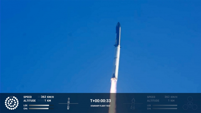스타십은 수직으로 이륙해 약 32㎞ 고도까지 도달했다.