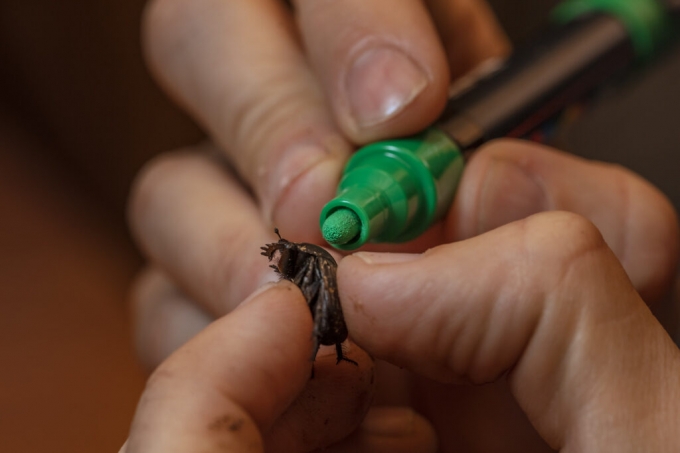 방사된 소똥구리는 식별을 위해 마커펜으로 등에 녹색 점으로 표시했다. 이 소똥구리들은 프랑스 남부 몽펠리에에서 들여온 종(scarabaeus laticollis)으로 최대 2년까지 살고 애벌레를 배설물 덩어리에 낳는다.