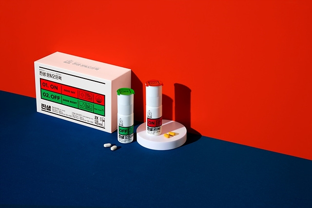 '찐생 온앤오프'(ON&OFF)는 출근전 섭취하는 '찐생 온'(ON)과 자기전 섭취하는 '찐생 오프'(OFF)를 패키지로 구성해 활력부터 숙면까지 하루의 시작과 끝을 케어할 수 있는 '액상+정제'의 이중제형 제품이다.