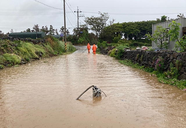 이번 비로 제주 지역 곳곳에서 침수피해 사고가 발생하고 있다. 4일 제주도 소방안전본부에 따르면 이날 오후 1시까지 호우 등 기상 상황 관련 신고 총 9건이 접수됐다. 제주시 애월읍 봉성리 공사현장은 빗물이 200t가량 유입돼 소방대원들이 배수작업을 벌였고, 제주시 연동의 한 건물 지하에도 50t가량의 물이 들어찼다. 서귀포시 대정읍 무릉리에서는 도로가 침수되면서 차량이 고립되기도 했다.