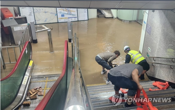 광주지역은 5일 오후 시간당 39㎜의 집중호우가 쏟아지면서 시설물이 침수되고 도로 곳곳에 물이 고였다. 지하철 1호선 공항역에서는 대합실에 흙탕물이 들이차면서 오후 4시 42분부터 1시간 10분가량 열차가 무정차 통과했다. 역사 외부의 승강기 신설 현장에서 약 200톤(t)의 빗물이 유입돼 침수가 발생했다.