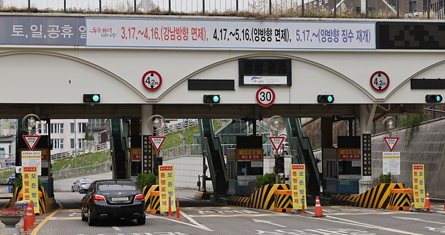 15일 서울시에 따르면, 지난 3월 17일부터 한달간 외곽(강남)방향을, 4월 17일부터 양방향 모두 면제했던 남산터널의 혼잡통행료를 이달 17일부터 다시 징수한다.
