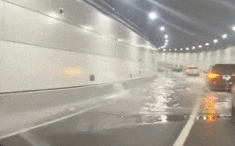 중국 소셜서비스(SNS) 웨이보에는 지난 16일 물바다로 변한 터널 내부 상황을 담은 영상이 다수 올라왔다. 한 영상에는 터널 천장과 벽면에서 물이 쏟아지는 장면과 차들이 비상등을 켜고 서행하거나 후진하는 모습이 담겨있다.