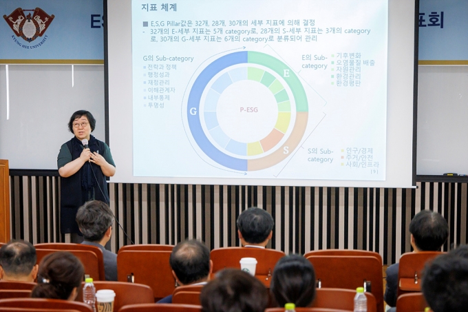 경희대학교가 기업의 지속가능한 경영 평가체계를 'ESG' 모형을 도시와 지자체 등 공공 부문으로 확대한 'P-ESG'를 공개했다.