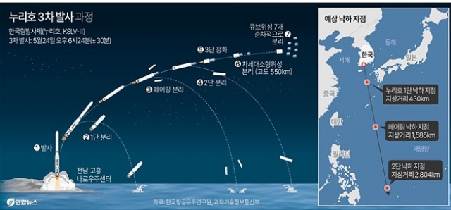 누리호의 목표 고도도 2차 발사 때는 700km였지만 이번에는 550km로 조정했다. 만약 누리호의 점검 등으로 발사 시점이 연기돼 정해진 시간을 놓칠 경우 발사는 다음 날로 밀리게 된다.