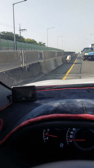 이 트럭은 도축하기 위해 돼지를 싣고 도살장으로 향하던 중이었다. 트럭에 실린 돼지들은 모두 죽음을 앞둔 신세였다. 그래서였을까. 트럭에서 떨어진 돼지는 트럭이 달리는 반대방향으로 차량들을 피해 걷고 있었다. 마치 필사의 도망을 치는 것처럼 보였다.