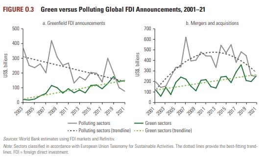 세계은행의 글로벌 투자경쟁력 보고서에 따르면 기업은 정부의 압력을 받을 때 지속가능성 이니셔티브에 투자할 가능성이 훨씬 더 높다. 보고서는 "정부의 압력은 다국적 대기업이 친환경 기술이전을 장려하고 지속가능성 활동에 대한 투자를 늘리는 데 있어 여전히 중요한 수단이다"고 말했다.