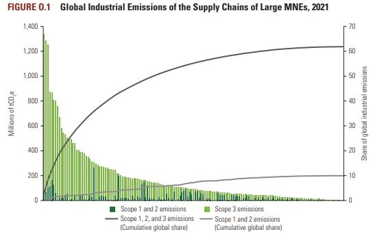 보고서에 따르면 157개 다국적 대기업의 직접 활동과 공급망이 전세계 산업부문 배출량의 최대 60%를 차지했다. 이들 대기업이 직접 배출하는 비중은 10%이지만 공급망을 통한 간접 배출량이 산업부문의 절반 비중을 차지한다는 것이다.