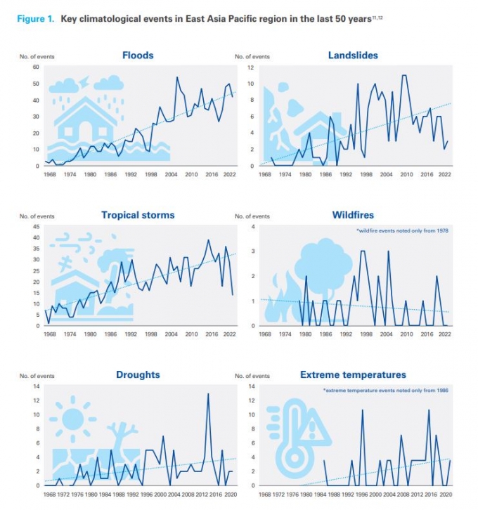 유니세프(UNICEF)가 발간한 최신 보고서 '임계점을 넘어'(Over the tipping point)에 따르면, 지난 50년간 기후 및 환경 위험이 증가함에 따라 동아시아·태평양 지역은 기후변화로 인해 돌이킬 수 없는 피해에 직면해 있다.