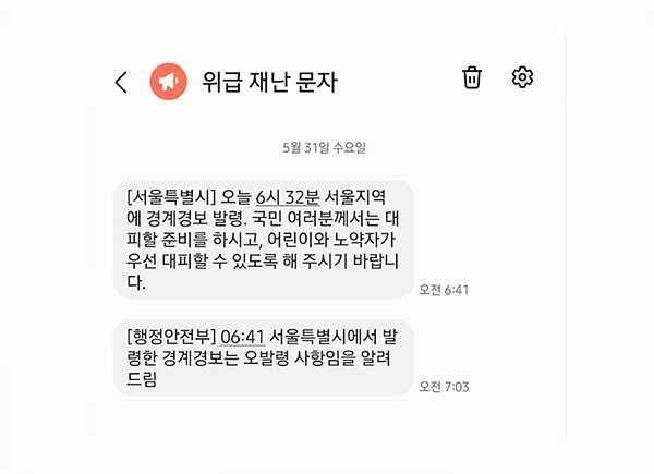 행안부 관계자는 "위급재난 문자는 행안부와 지자체가 모두 발송할 수 있는데, 이번에 서울시 전역에 전송된 문자는 서울시가 오발송한 것"이라고 했다.