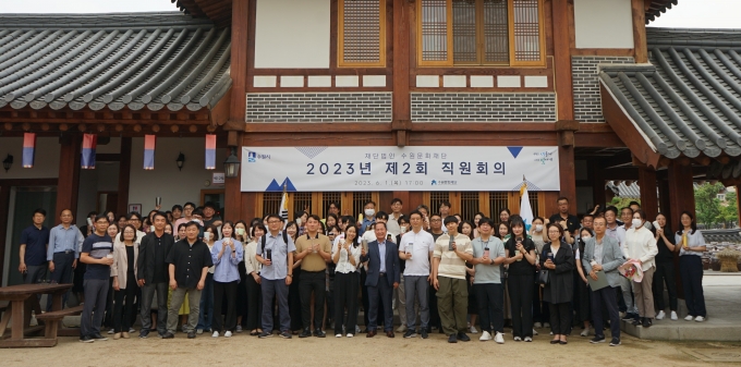 재단은 지난 1일 친환경 캠페인의 일환으로 수원전통문화관에서 '다회용 컵과 함께하는 직원회의'를 개최했다고 2일 밝혔다. 김현광 대표를 포함한 100여명의 직원은 다회용 컵을 지참해 친환경 실천 의지를 표현했다.