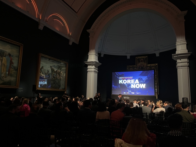 ▲8일 K-관광 국제로드쇼가 열린 영국 V&A 뮤지엄에서 업계 참가자들 대상으로 진행된 한국관광 설명회.(사진=한국관광공사)