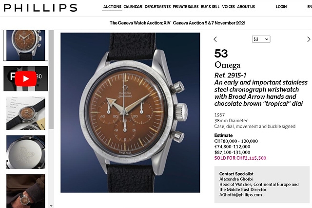 12일(현지시간) 미국 CNN 방송에 따르면 오메가는 2021년 11월 세계 3대 경매사 중 하나인 필립스 옥션이 스위스 제네바에서 진행한 경매에서 1957년형 스테인리스스틸제 '스피드마스터' 손목시계를 311만5000스위스프랑(약 44억원)에 매입했다.