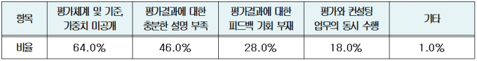 대한상의에 따르면 한 기업 관계자는 "해외 평가사에서 받는 결과는 상승하는 반면 국내 평가사의 결과는 하락하는 경우가 있었다"며 "해외 평가사는 평가기준과 가중치를 공개하고 평가결과에 대한 설명을 해 주는 경우가 많은데 국내 평가사는 그렇지 않은 경우가 많아서 기업 입장에서는 평가에 대응하는데 어려움이 있다"고 토로했다.