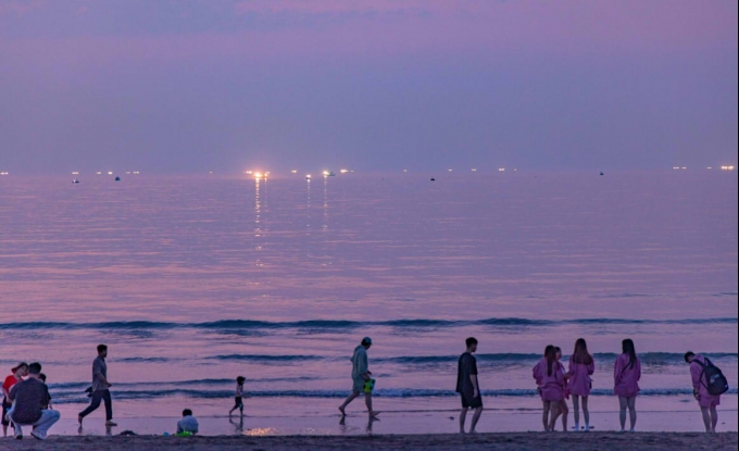 낭만 가득한 해변의 저녁, 푸른 바다가 핑크빛으로 물드는 고요한 시간. 더위를 잊게 해줄 파도 소리를 들으며 먼바다에 떠있는 고기잡이배들을 보고 있으면 어느새 더위가 가신다.