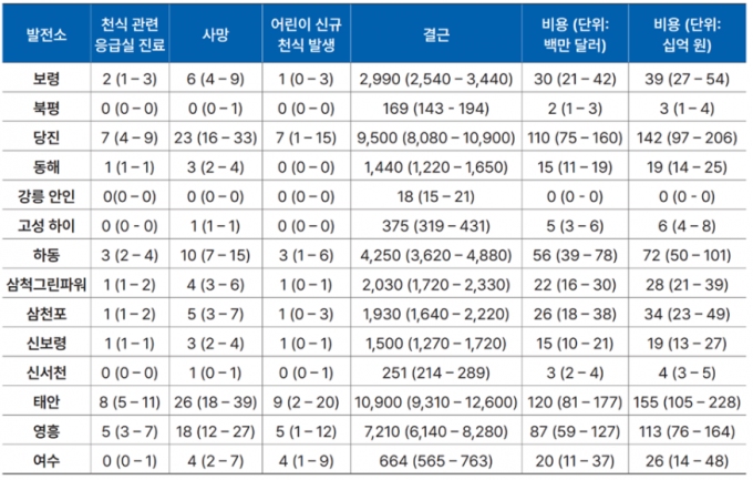 이처럼 2021~2022년 우리나라에서 석탄화력발전소의 대기오염으로 발생한 건강피해를 경제적 가치로 환산하면 12조9000억원에 달한다.