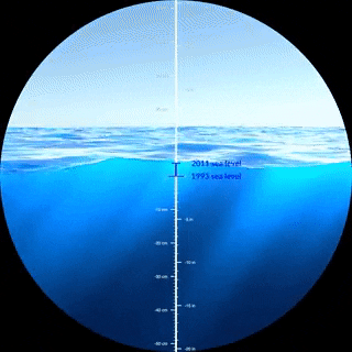 1993~2003년 사이 해수면은 약 2㎝ 상승했지만, 2003~2013년 사이에는 2배 이상인 5㎝가 상승했고 시간이 지나면서 해수면은 더 빠른 속도로 올라갔다.