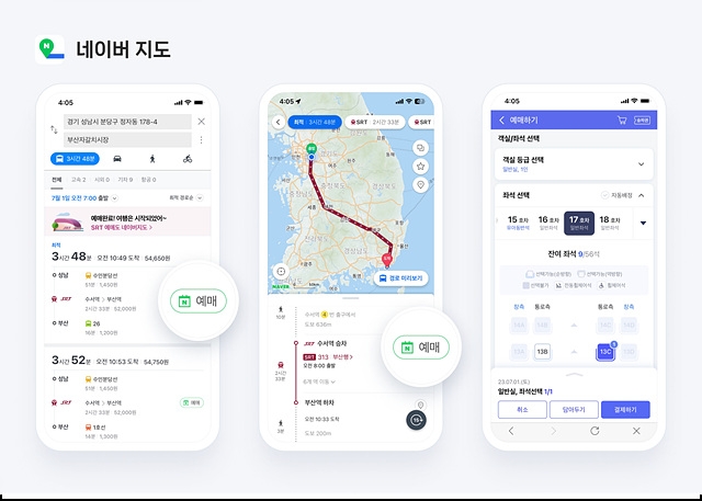 '네이버지도'에서 길찾기를 하면서 SRT 승차권을 예매할 수 있다.
